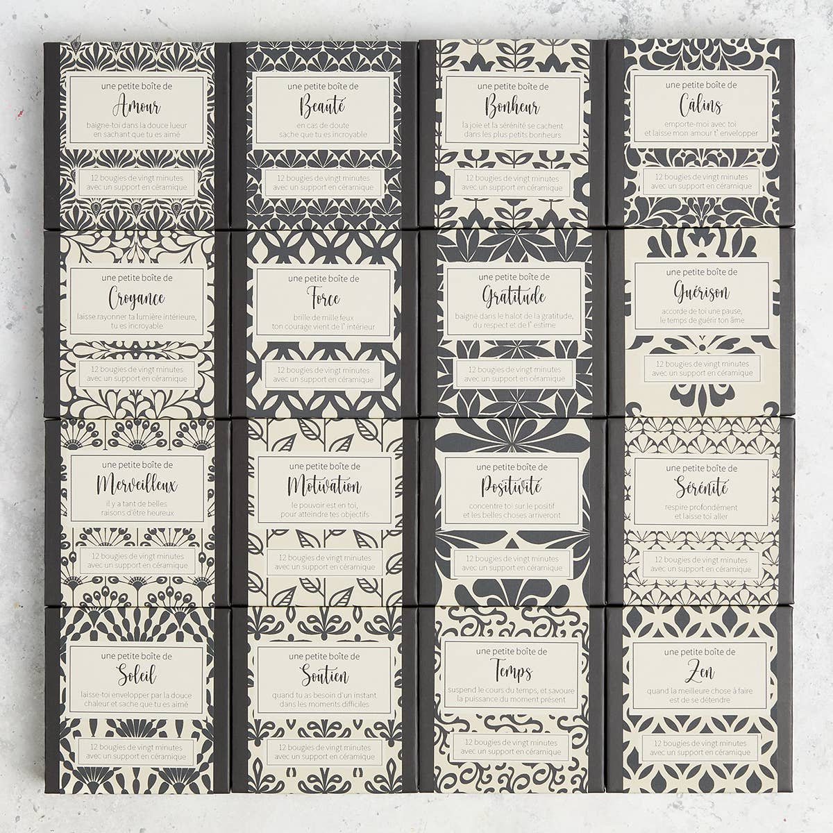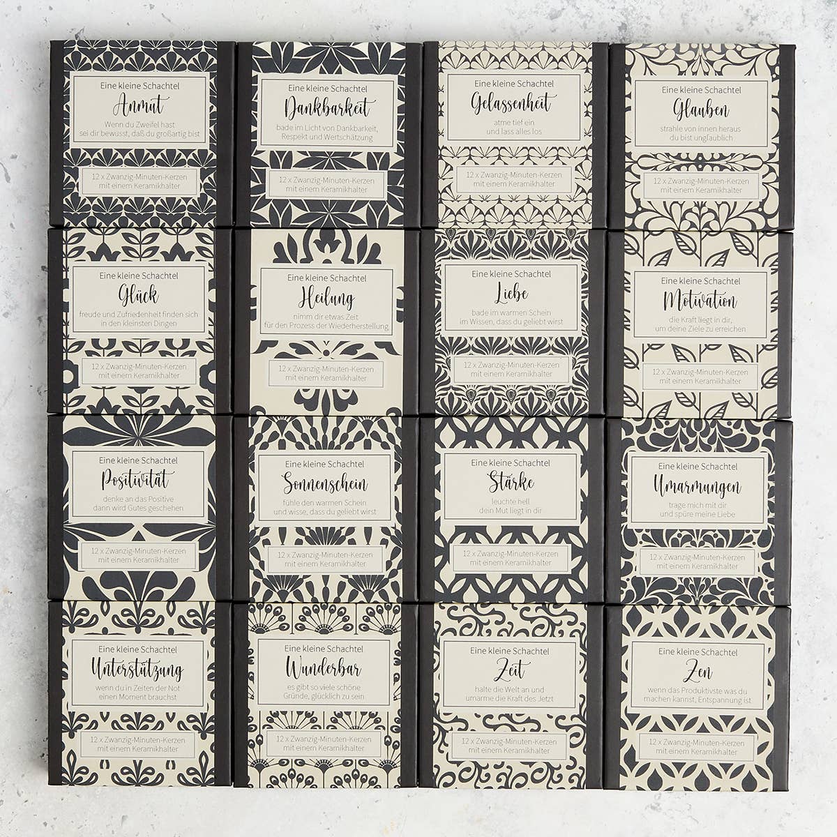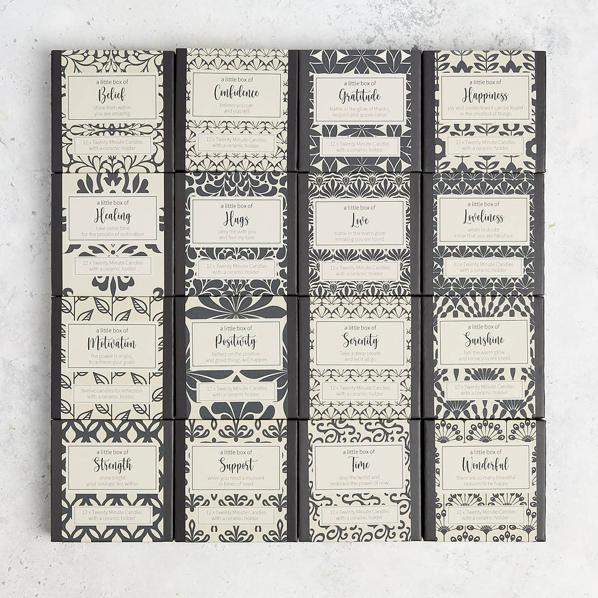 Take a deep breath and let it all go 12 x Twenty Minute Candles with a ceramic holder.