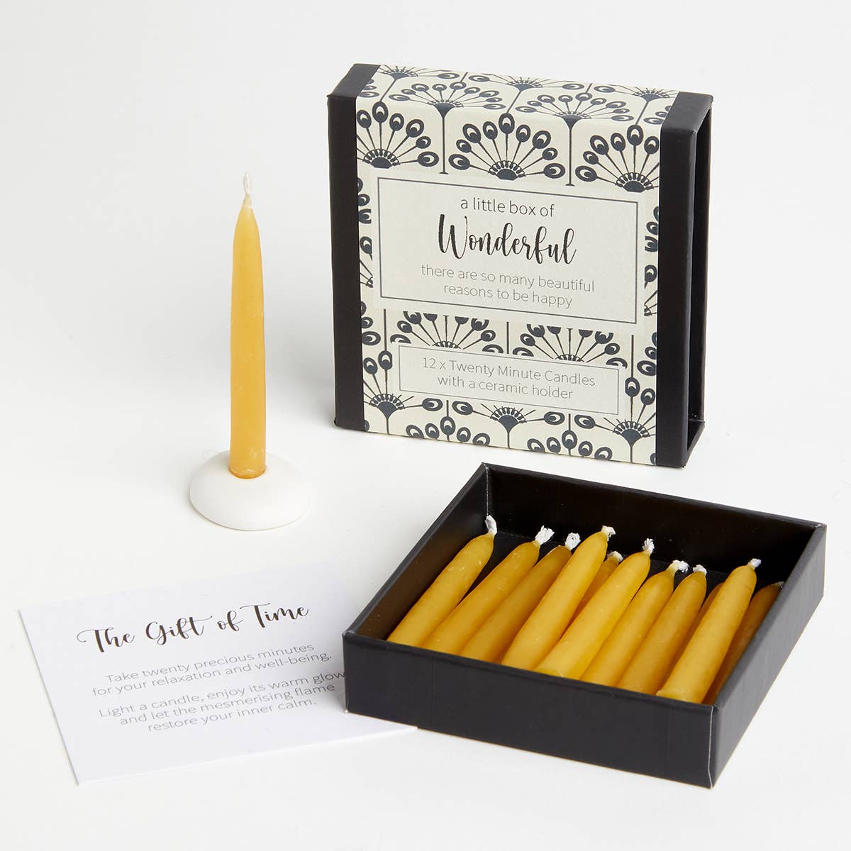 12 x Twenty Minute Candles with a ceramic holder for relaxation, meditation, mindfulness and well-being.