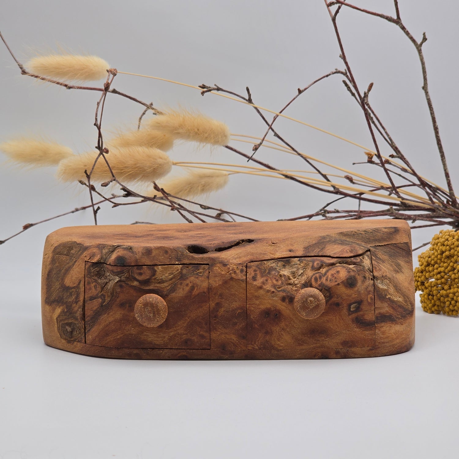 This fabulous little wooden box is handcrafted from Elm Burr wood by Dave McKeen in his workshop in Fife, Scotland using ethically sourced Scottish hardwoods.