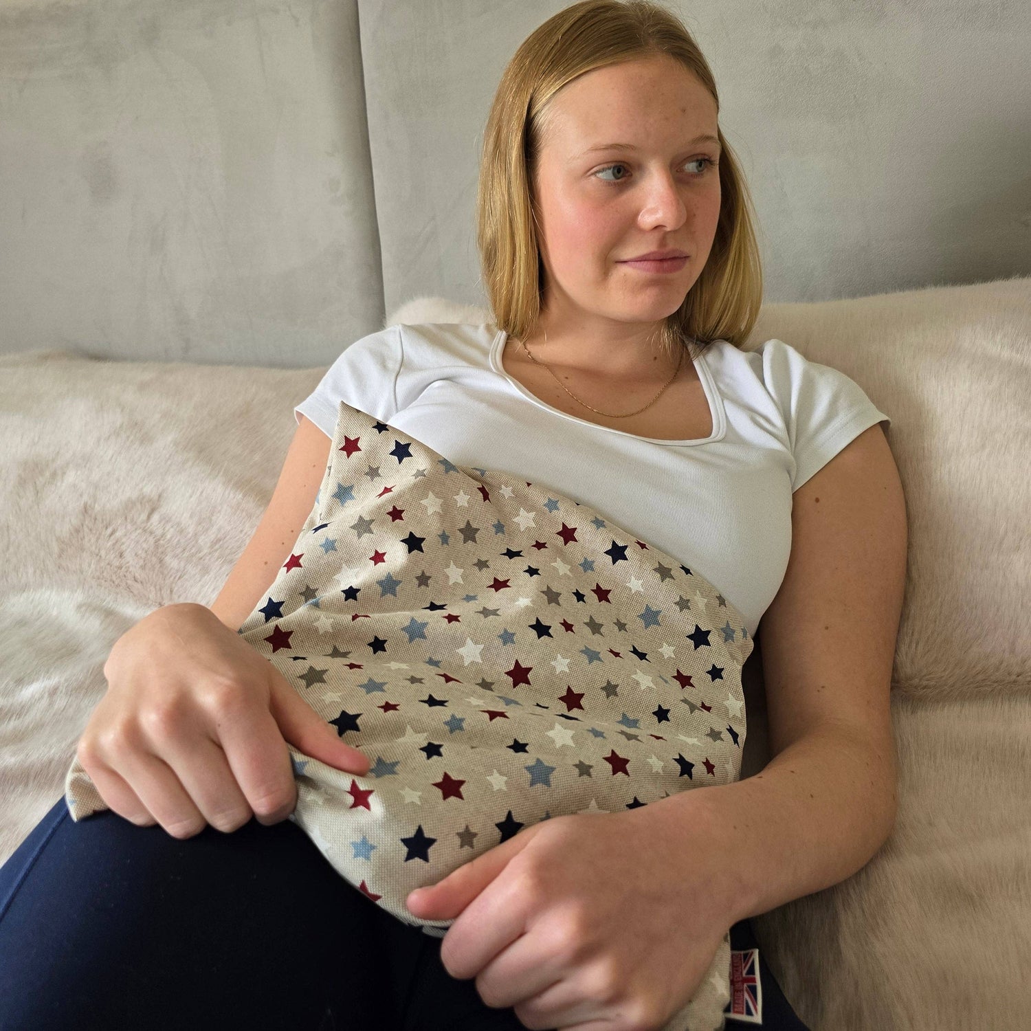They can be heated in a microwave for comforting warmth and a natural way to help soothe aches and pains. They can also be popped in the freezer to provide cooling relief in hot weather. All handmade in Wiltshire, England